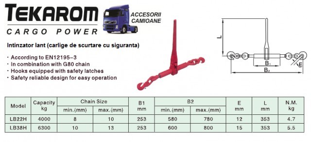 Cârligele de scurtare sunt prevăzute cu siguranțe de aluminiu , pentru a mari siguranța în exploatare. *La cerere se pot monta etichete metalice cu caracteristici tehnice.