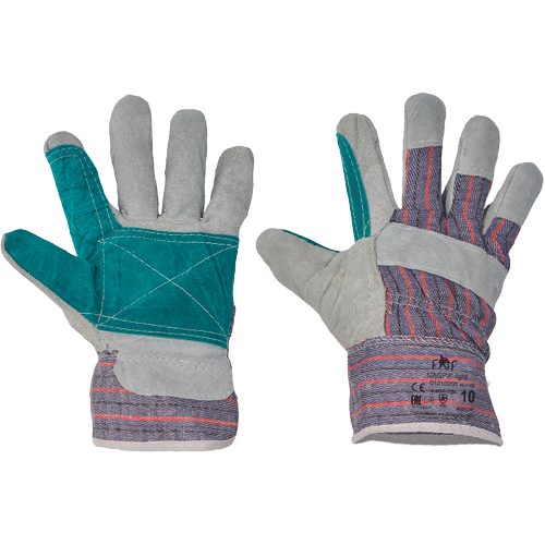 Materiale:Palm material: piele de vaca spaltuita Material de intarire: piele de vaca spaltuita Material pentru captuseala manusilor: poliester Material manseta: bumbac, woven Back material: bumbac, woven Descriere: Manusi combinate piele spalt de bovina textil.Cu captuseala in palma, material textil pe spate si manseta. Standarde: EN 3881111X EN 420Caracteristici: Tip manseta: gauntlet Zona de punere in aplicare: palma, degetul mare, degetul aratator
