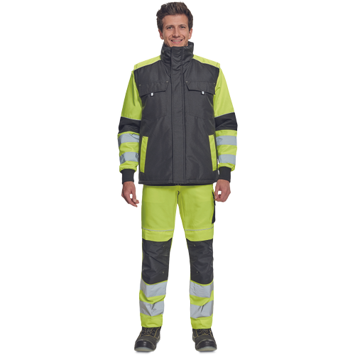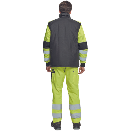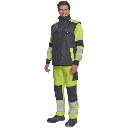 Materiale:Strat superior exterior imbracaminte: 100 poliester, Strat: polyurethane Captuseala interior imbracaminte: 100 poliester, taffeta Izolatie interior imbracaminte: 100 poliester, 200 gm Descriere: mens winter bodywarmer, zipper closure covered by velcro flap, 2 side pockets, 2 chest pockets, 1 inner cell phone pocket, reflective elements. Standarde: EN ISO 13688Caracteristici: Caracteristici: rezistenta la vant, rezistenta la apa, supradimensionat