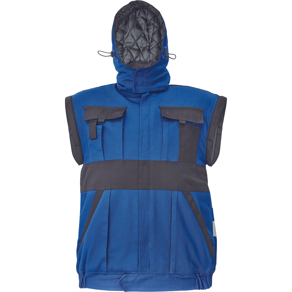 Materiale:Strat superior exterior imbracaminte: 100 bumbac, 260 gm Captuseala interior imbracaminte: 100 poliester Descriere: o versiune inovatoare a popularei jachete de iarna Max, cu dungi reflectorizante in jurul corpului si pe maneci Standarde: EN ISO 13688Caracteristici: Caracteristici: 2 in 1, maneci detasabile, subdimensionat, supradimensionat