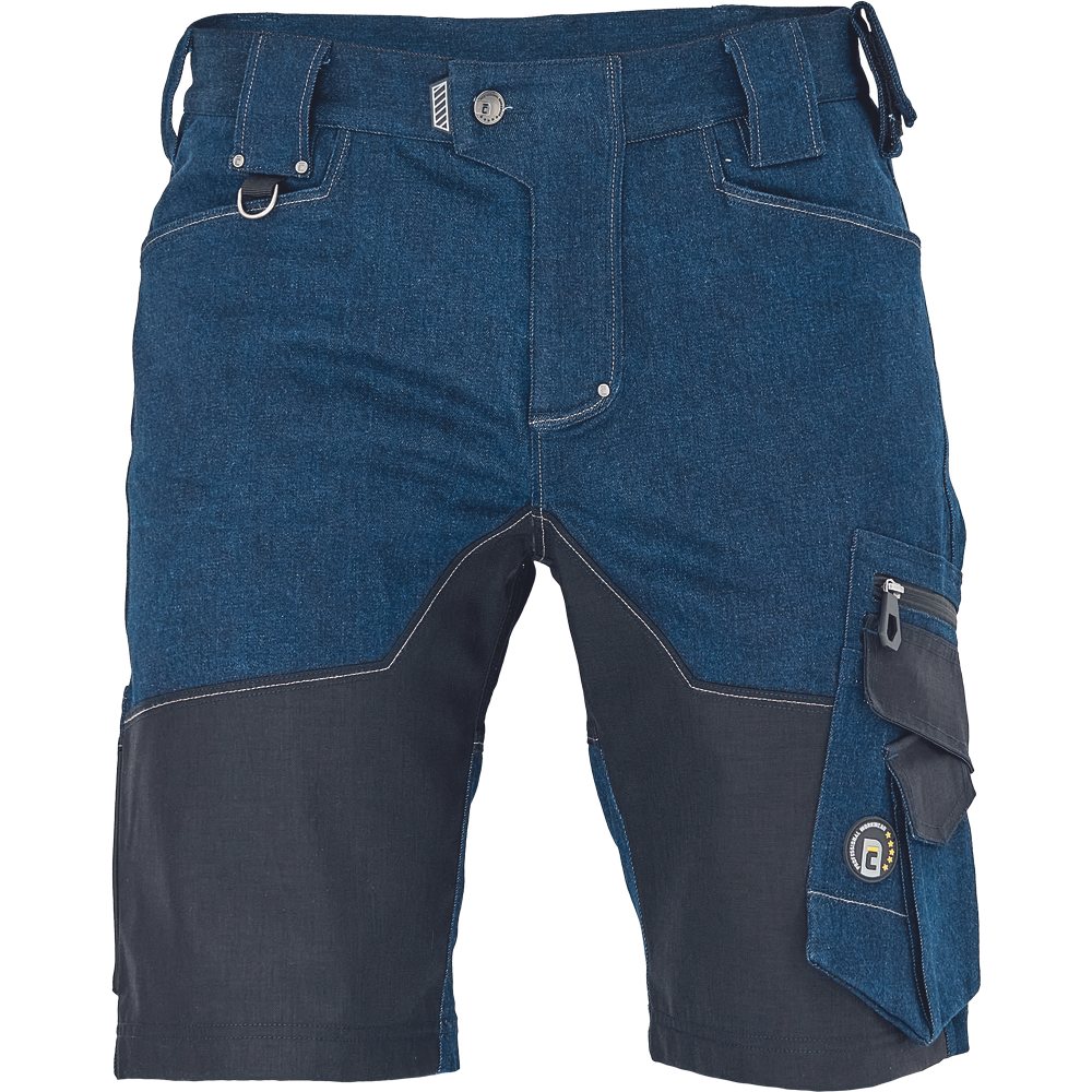 pantaloni scurti de lucru pentru barbati cu talie elastica material denim prespalat in combinatie cu material TrifibetexPRO si Trifibetex cusaturi durabile triple in zona picioarelor si coapselor, parti ale coapselor intarite cu CORDURA si Trifibetex buzunare frontale multifunctionale spatioase si curele pentru unelte