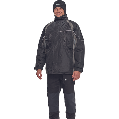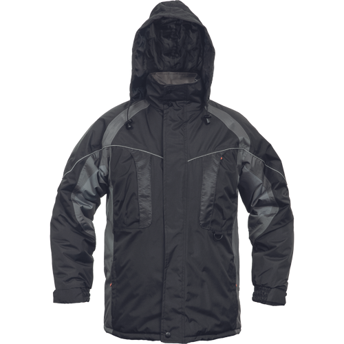 Materiale:Strat superior exterior imbracaminte: 100 poliester, 230 gm, Strat: PVC Descriere: Jacheta termoizolata, impermebila, cu gluga in guler. Standarde: EN ISO 13688Caracteristici: Caracteristici: supradimensionat, rezistenta la apa, subdimensionat Coloana de apa: 2000 mm