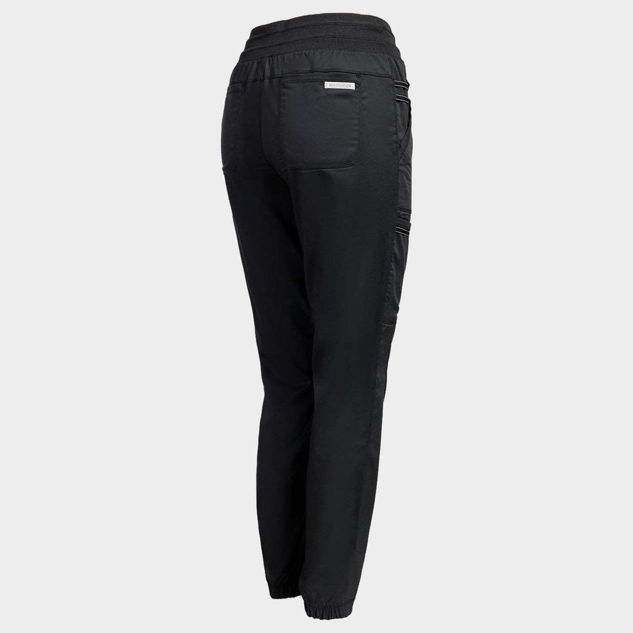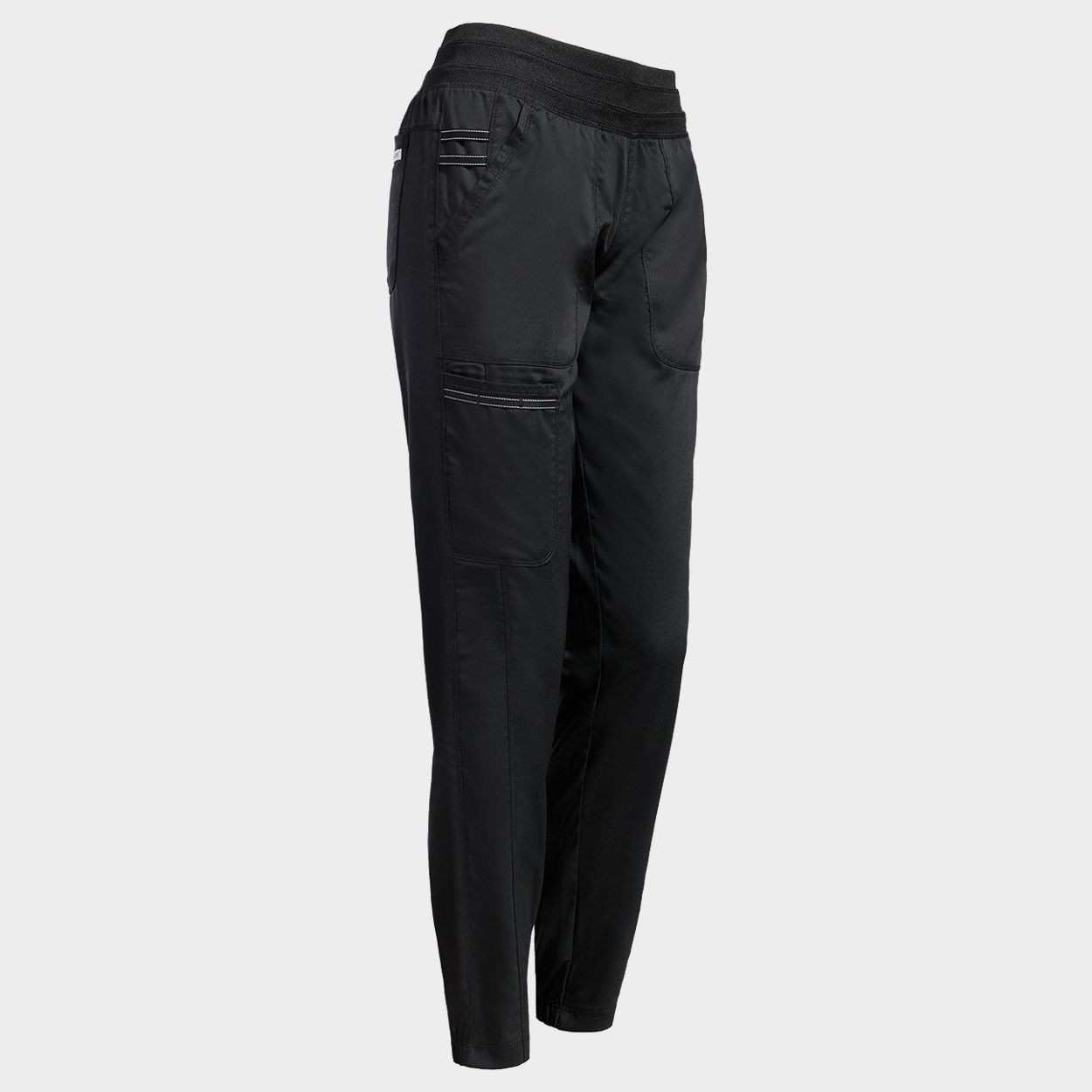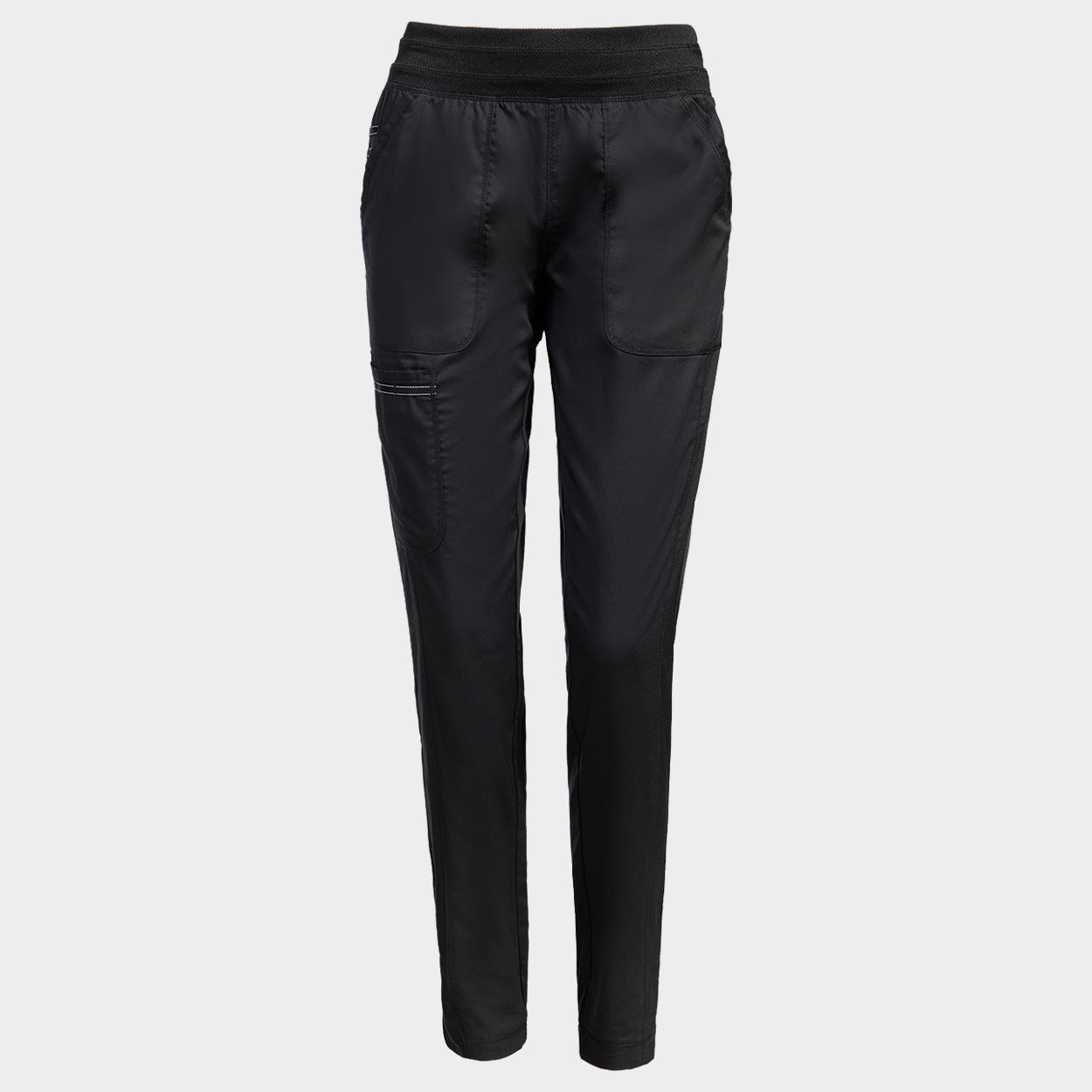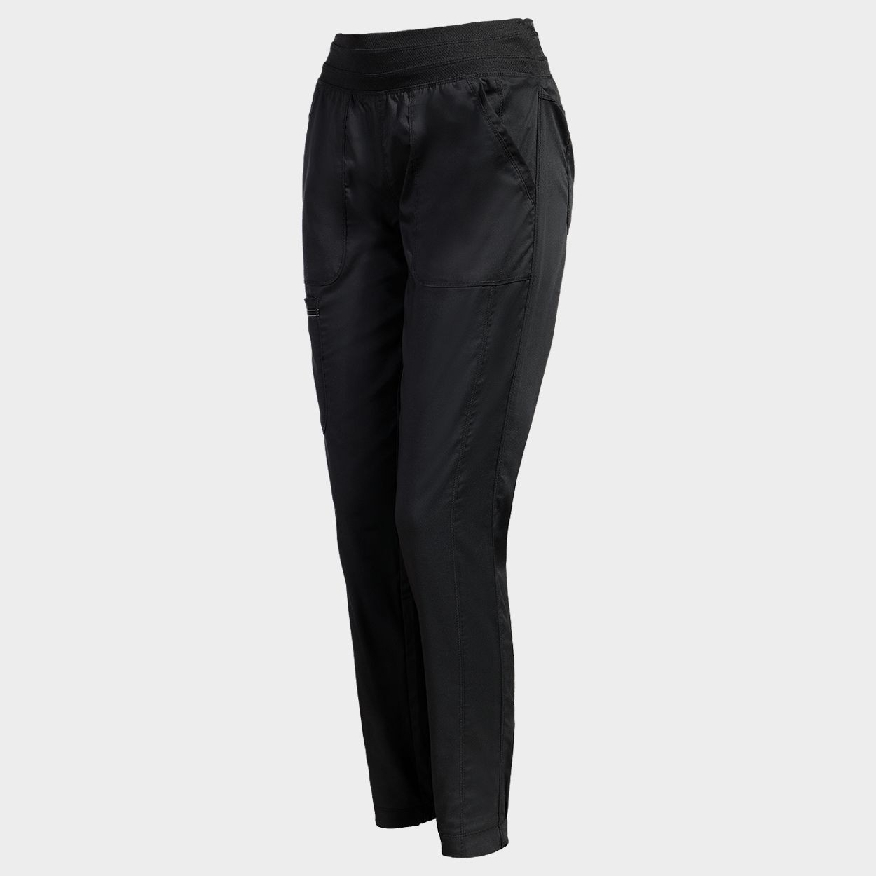 Pantaloni medicali pentru femei, cu talie elastică, care oferă confort și comoditate pe tot parcursul zilei. Parte din colecția Cherokee Revolution, ce combină funcționalitatea cu un stil modern.