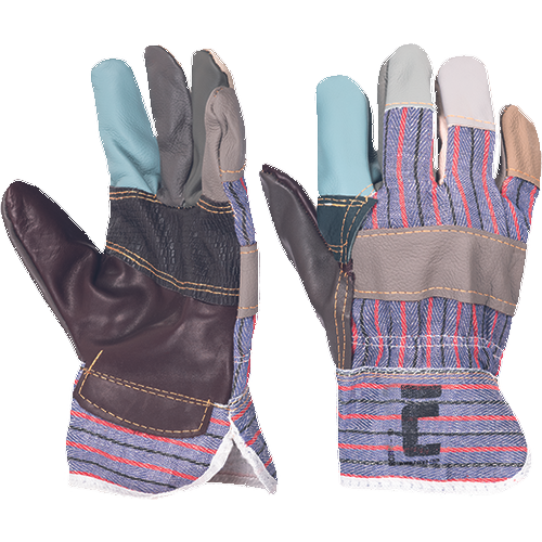 Materiale:Palm material: piele de vaca presata pentru mobila Material pentru captuseala manusilor: bumbac, woven Materialul manusilor: bumbac, woven Material manseta: bumbac, woven Descriere: Manusi cu palma multicolora din piele de bovina pentru mobila dosul palmei si manseta din tesatura de bumbac Standarde: EN 3882223X EN 420Caracteristici: Tip manseta: gauntlet