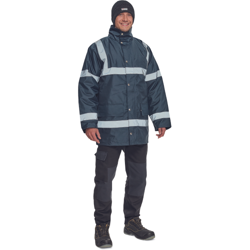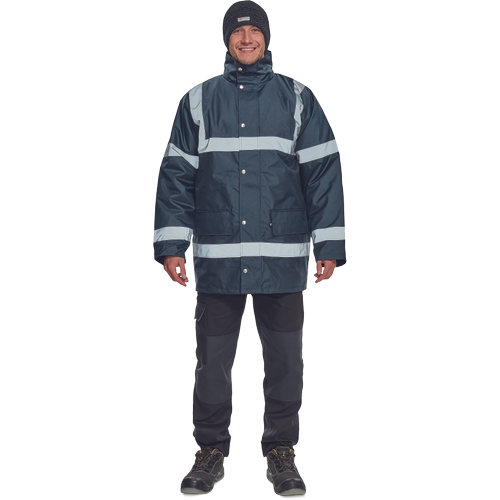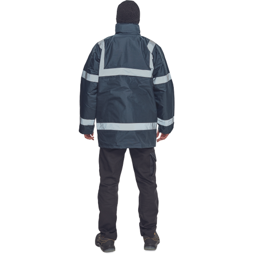 Materiale:Strat superior exterior imbracaminte: 100 poliester, 190 gm Captuseala interior imbracaminte: 100 poliester, taffeta Izolatie interior imbracaminte: 100 poliester, 160 gm Descriere: Jacheta termoizolata, cu mare vizibilitate conform normei EN 471, impermeabila, – rezistenta la apa clasa 3,conform normei EN 343, captuseala cu permeabilitate la abur clasa 1,conform normei EN 343, cu benzi reflectorizante, gluga detasabila. Standarde: EN ISO 13688 EN ISO 20471Class: 3 EN 3420.303b3WP EN 34331XCaracteristici: Caracteristici: respirabil, rezistenta la apa, rezistenta la vant, poliuretan, subdimensionat Coloana de apa: 5000 mm