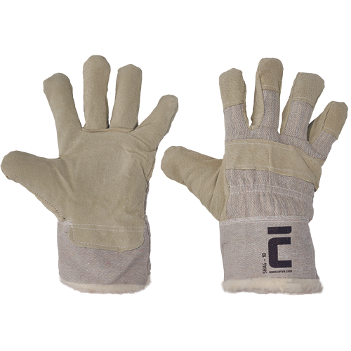 Materiale:Palm material: piele de porc spaltuita Material pentru captuseala manusilor: bumbac Material manseta: bumbac, woven Back material: bumbac, woven Descriere: Manusi termoizolante din spalt de porc pe palma, dosul si manseta din tesatura alba de bumbac, insertie termica Standarde: EN 3882121X EN 420Caracteristici: Tip manseta: gauntlet