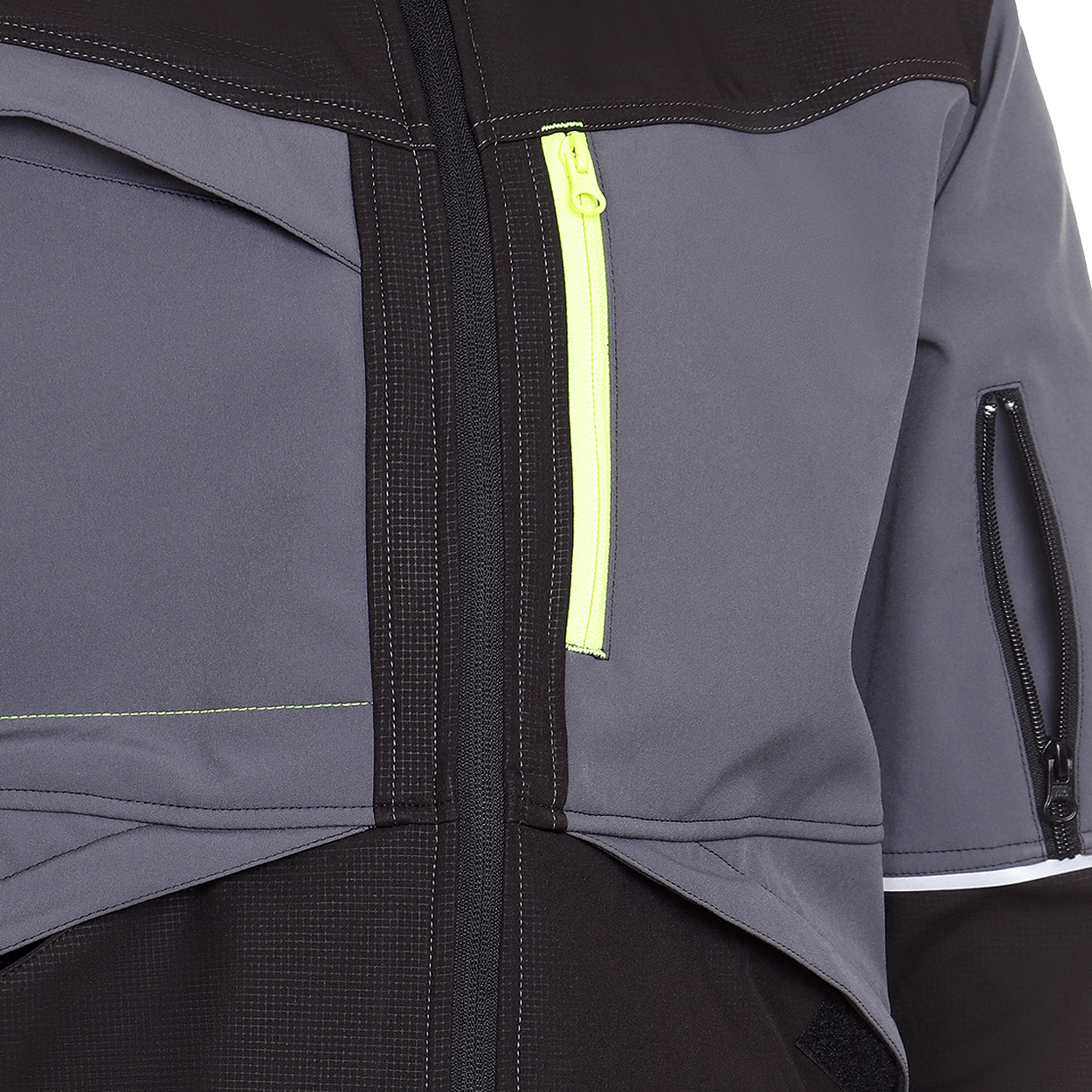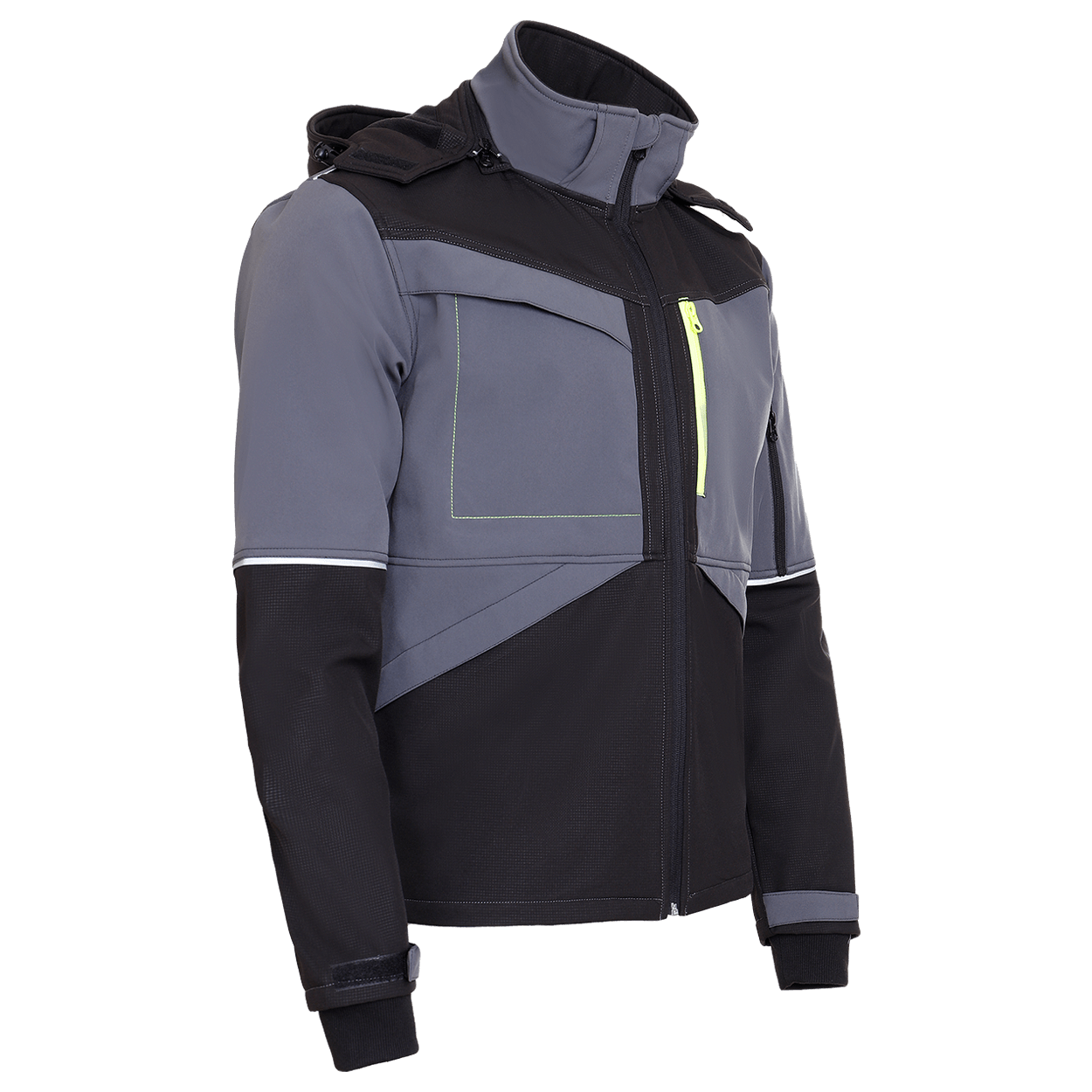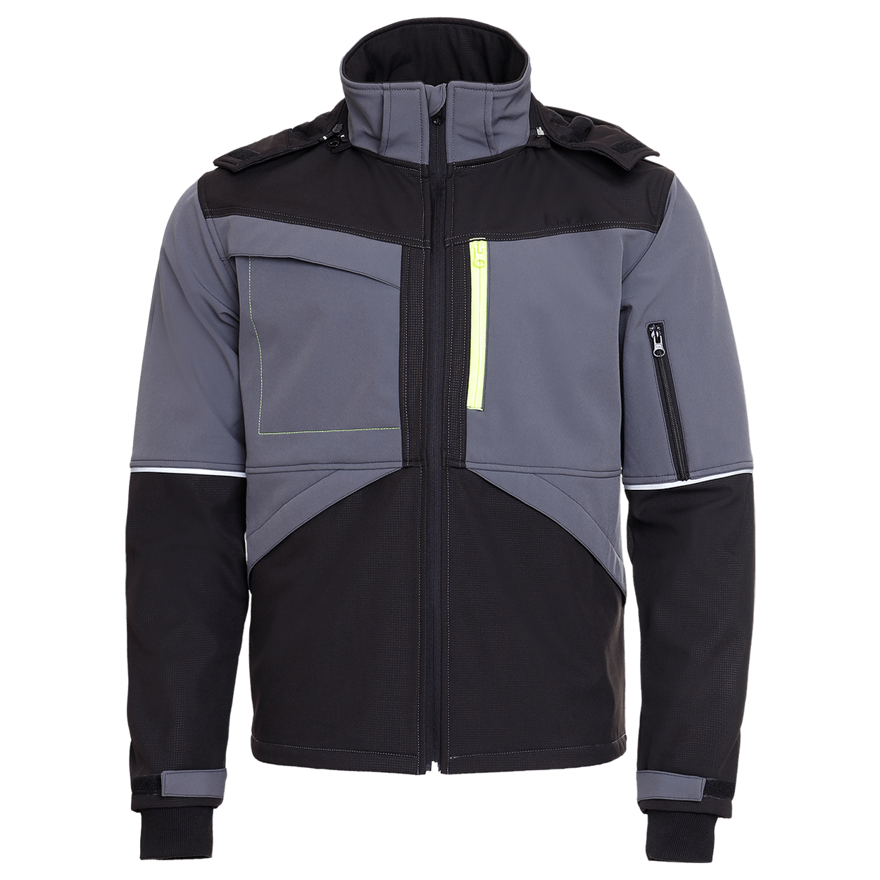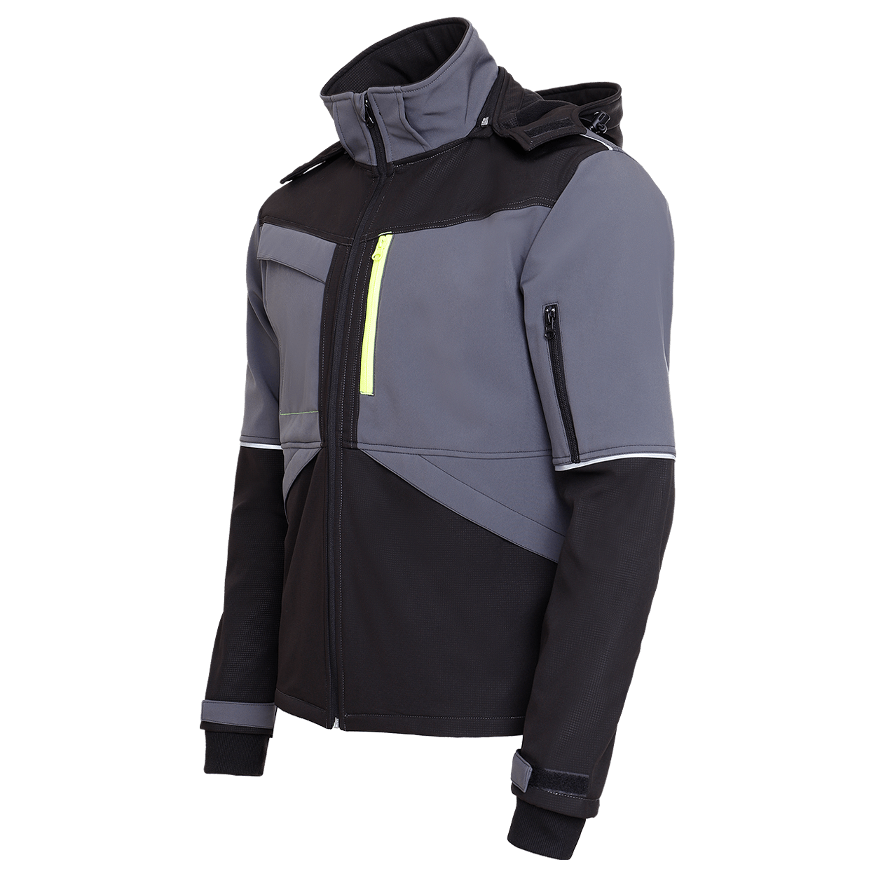 Jachetă softshell cu glugă detașabilă, reglabilă.